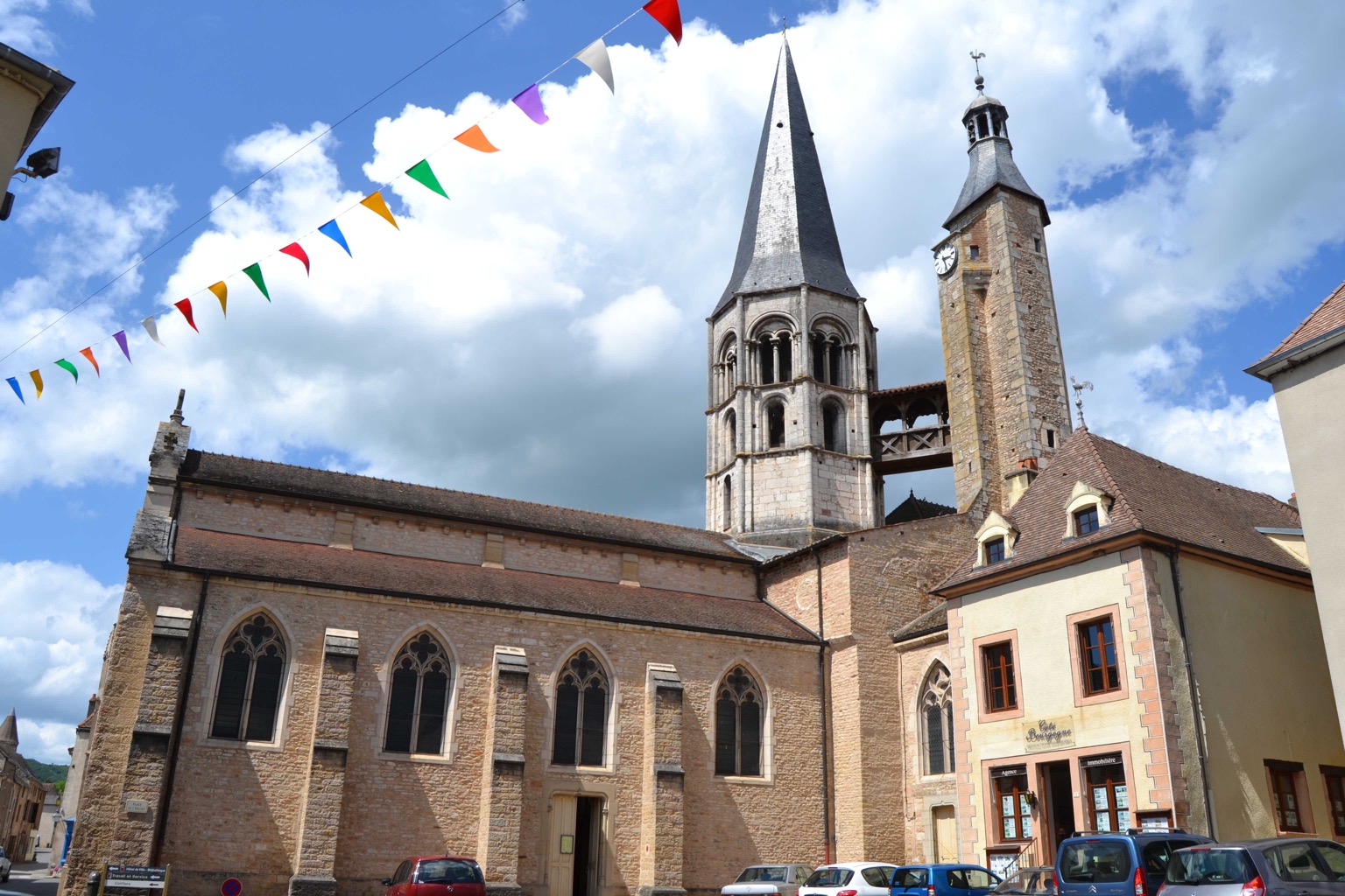 Les bâtiments du doyenné ne sont pas connus. Néanmoins, l’église dédicacée à Gengoul a conservé de l’époque romane sa nef et son clocher à trois étages, à l’origine surmonté d’un toit trapu – avant d’être remplacé par une flèche en 1867, d’après les dessins de Viollet-le-Duc. Agrandie à la fin du XIIe s. et achevée au XIIIe s., elle constitue un bel exemple d’architecture de transition entre les styles romans et gothiques. Réparée après un incendie en 1562, la reconstruction du chœur et de la nef est achevée en 1566. Le donjon à lanterne, relié au clocher par une passerelle, date de cette époque. A proximité de l’église se situent les restes du « château royal » (siège de la prévôté) construit sous Philippe-Auguste : du grand ensemble démantelé en 1604 sur les ordres d’Henri IV subsiste le donjon. A son image, l’urbanisme de Saint-Gengoux est partout empreinte de son passé médiéval : tracé des rues confinées dans les remparts, dont certains éléments sont encore visibles, maisons à pan de bois, nom des rues...